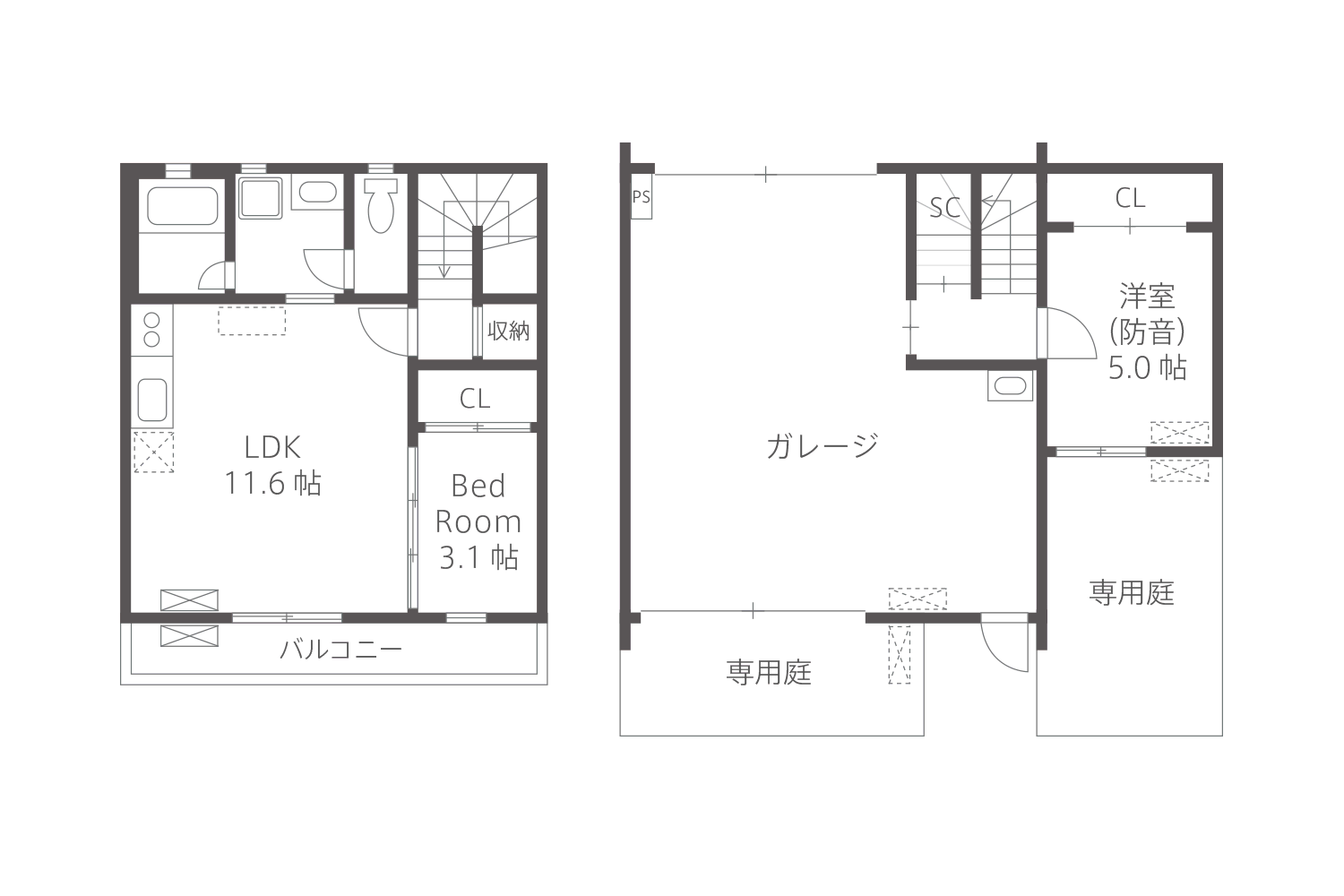 - 60㎡(ガレージ内26.75㎡)