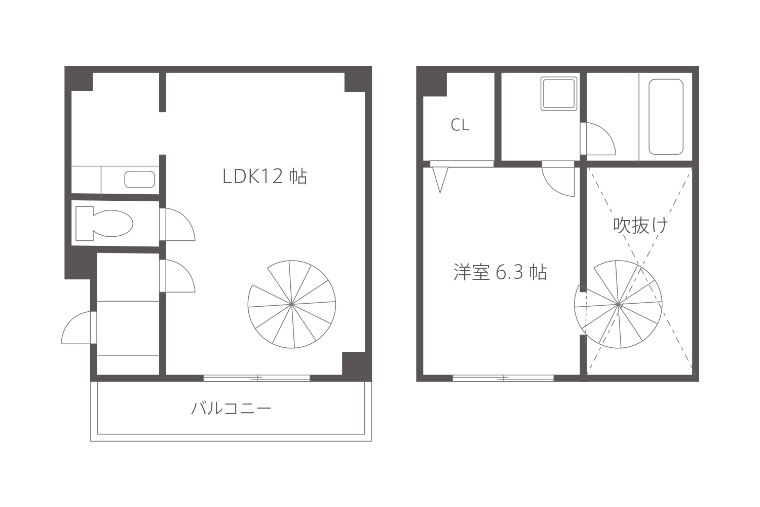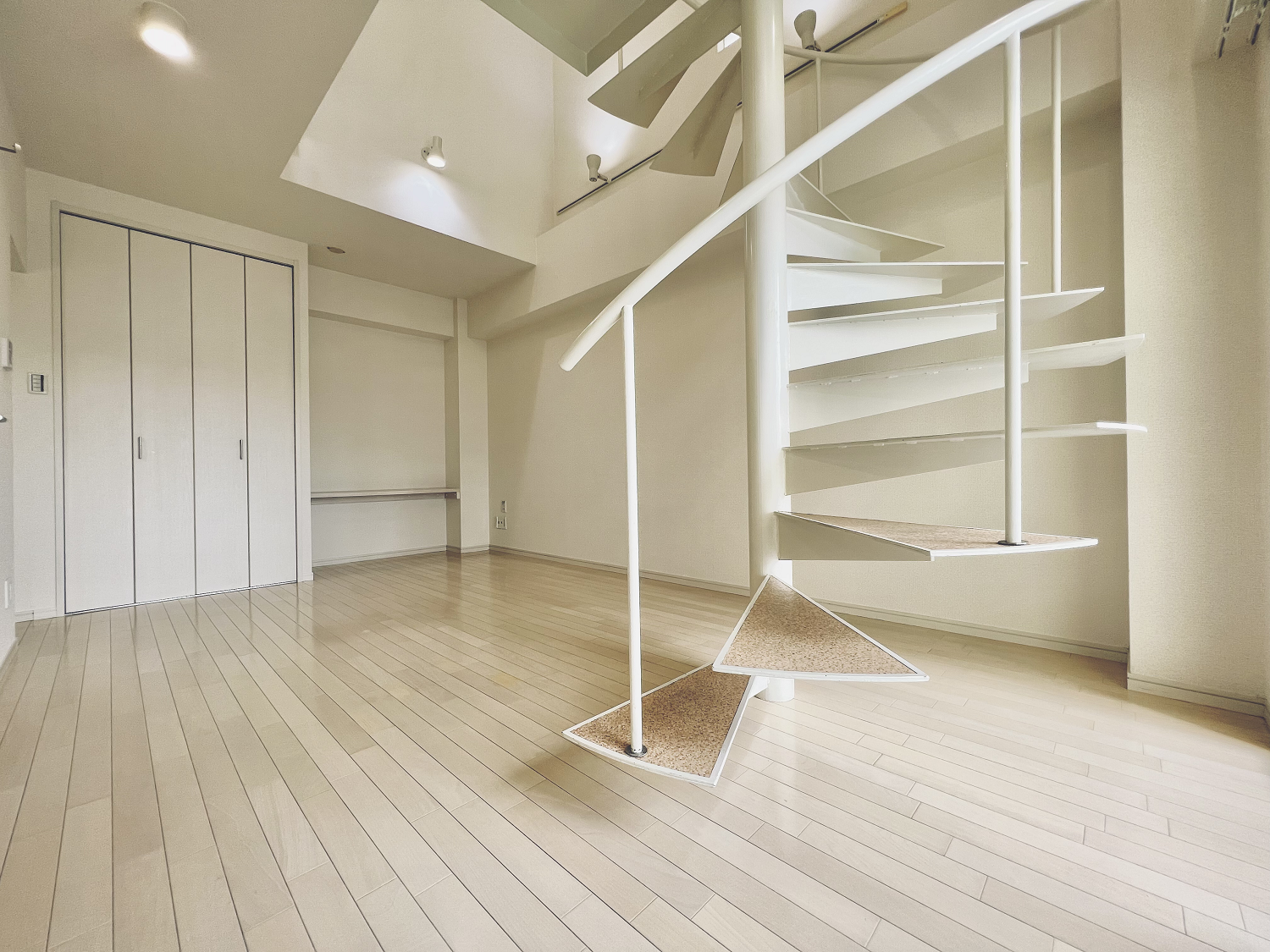 - メゾネットタイプのなかには、螺旋階段で2階に上がれるユニークなものも。